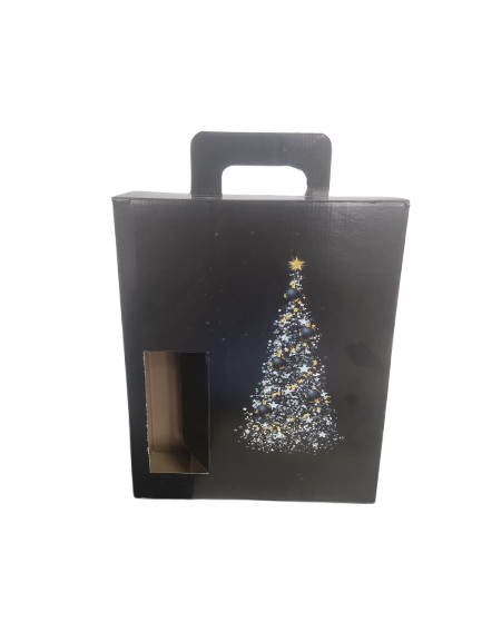Dispune de decupaj frontal cu fereastră ce permite vizualizarea unei sticle și de mâner integrat, pentru transport facil și prezentare impecabilă.