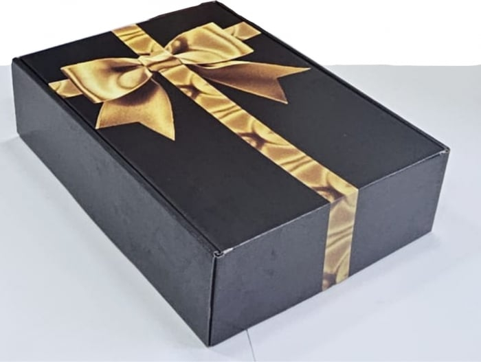 Cutia este realizată din carton rezistent, cu finisaj mat-negru și capac argintiu metalizat, având un aspect modern și rafinat. Designul autoformant o face ușor de asamblat și perfectă pentru ambalarea rapidă a produselor.